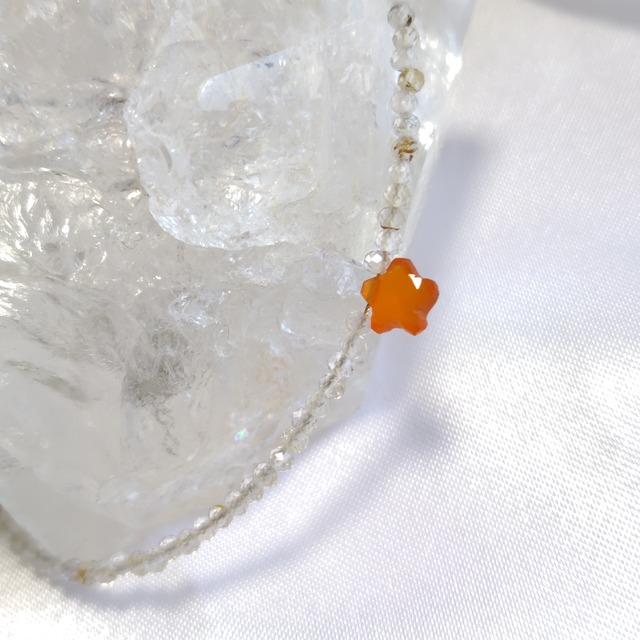 小さなルチルクォーツと、鮮やかなオレンジ色のカーネリアンで元気が出るお守りに。 牡羊座のお守りにも。 サイズ17cm 金属パーツは ワイヤーとニューホックのみ真鍮 他はkgfを使用 天然石のため衝撃による欠けや変色の恐れがあります。繊細な商品のためお取り扱いにはご注意ください。