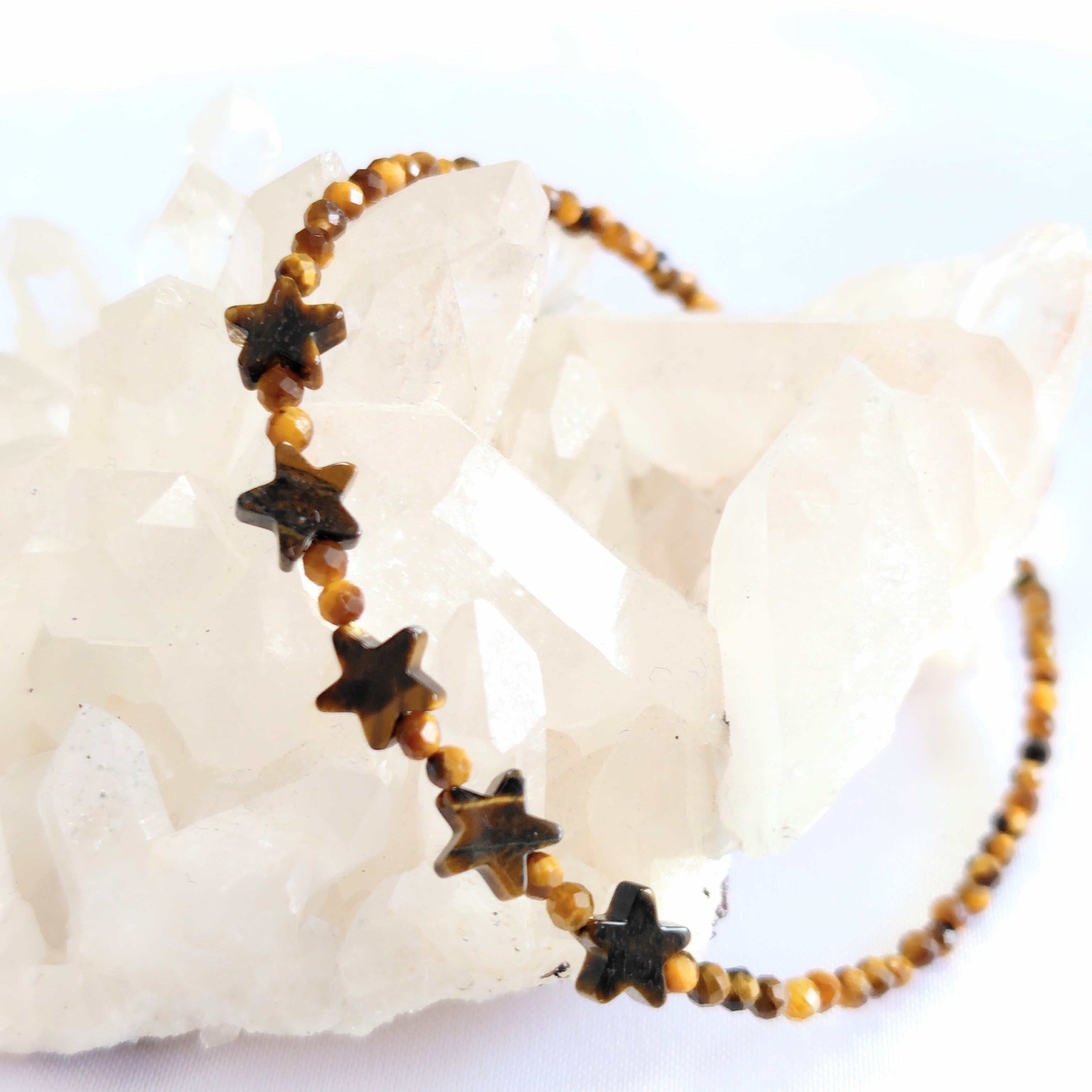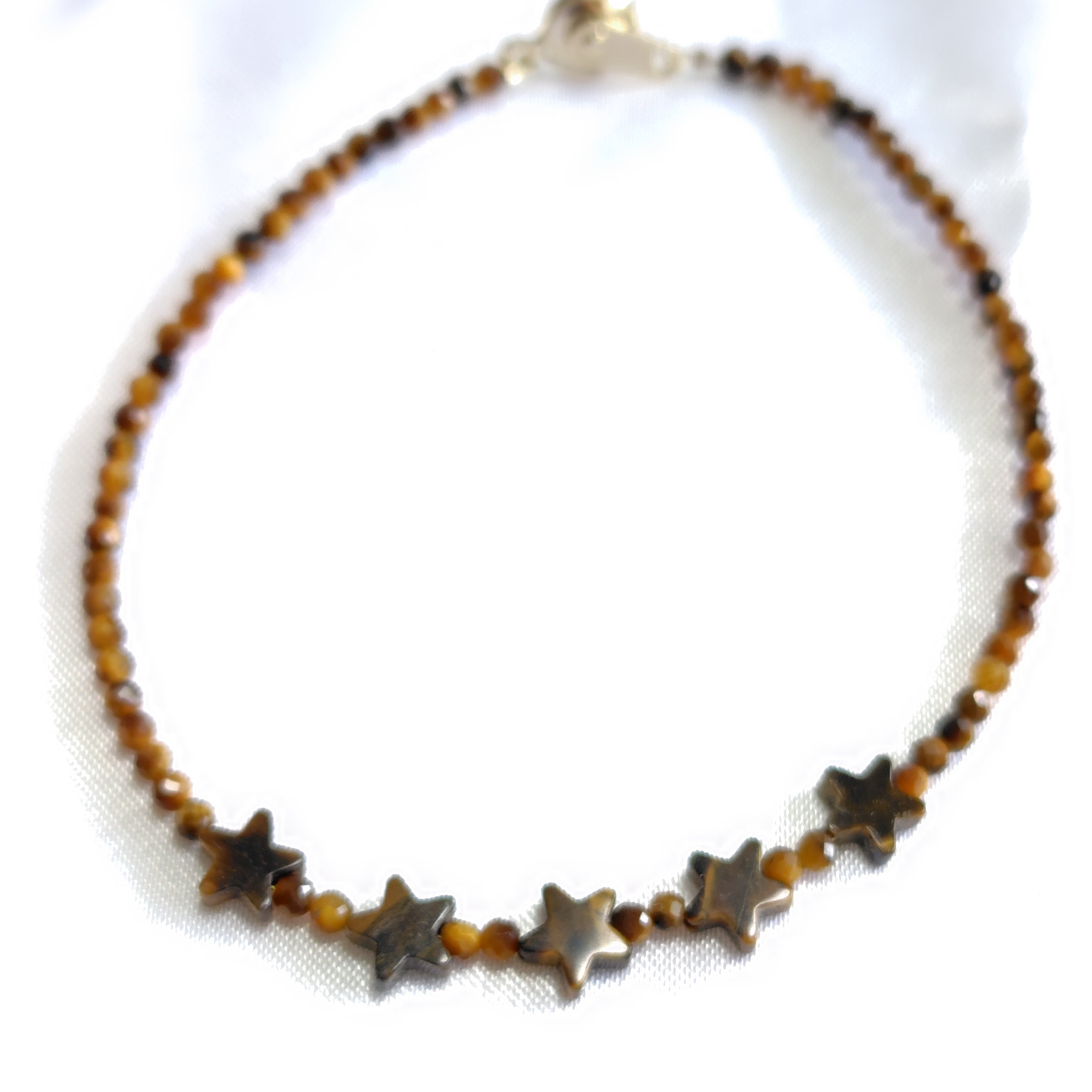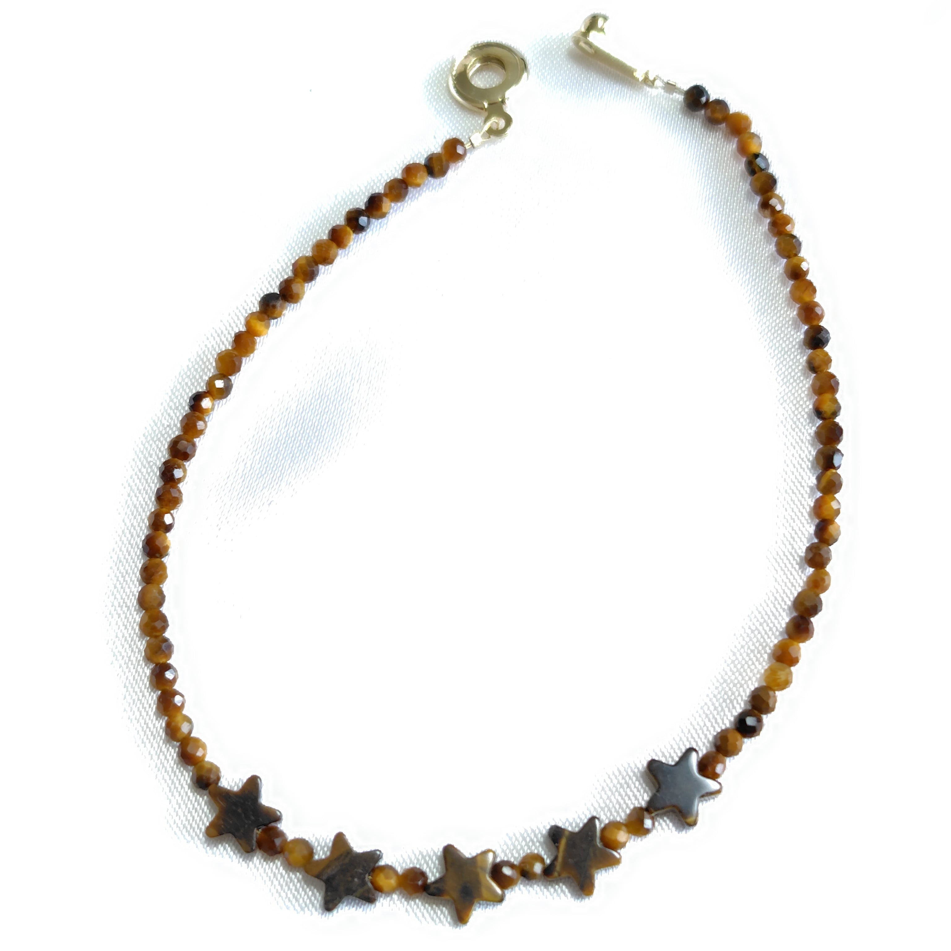 ラウンドカットのタイガーアイに、星型のタイガーアイを5石つけました。