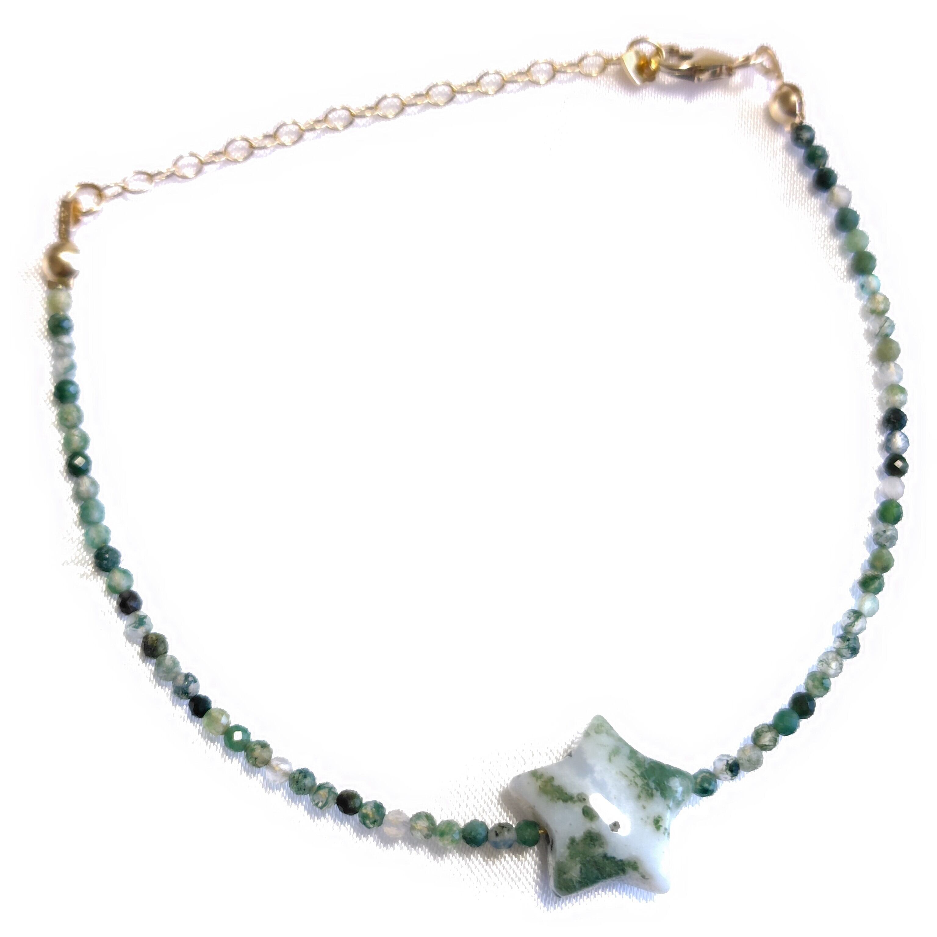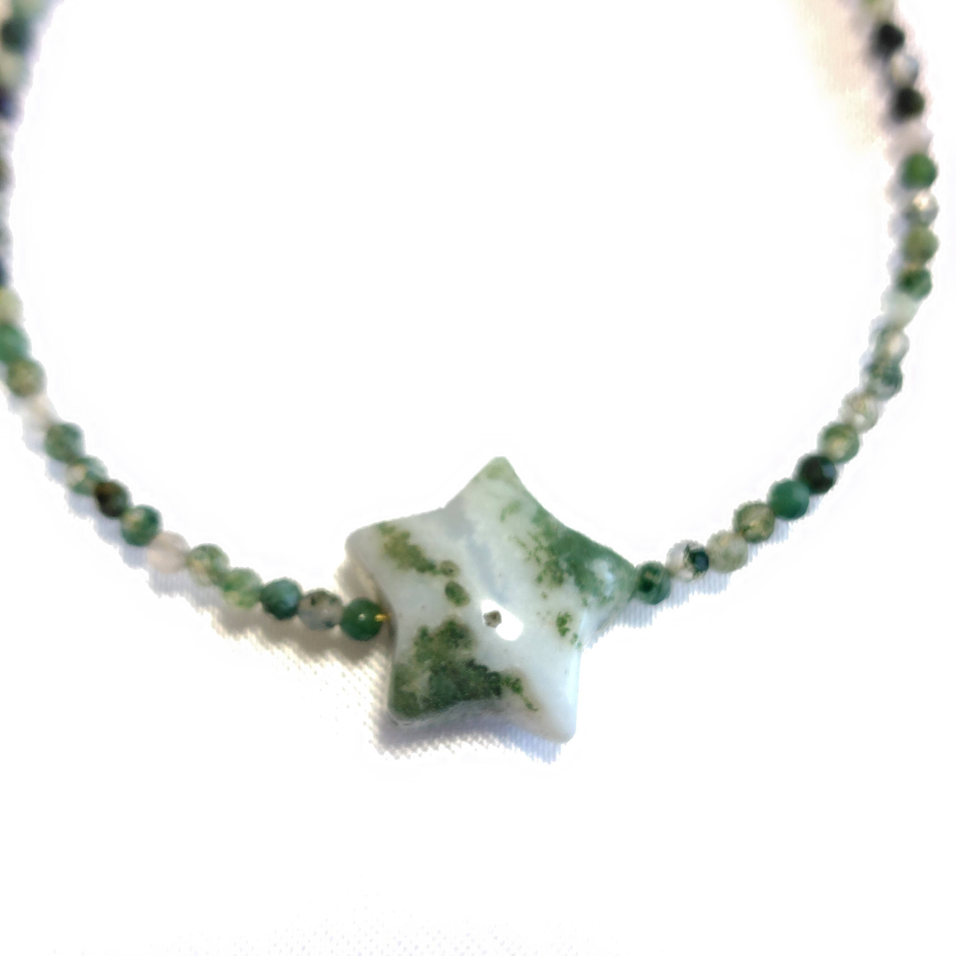 モスアゲートの大きめ星付ブレスレットです。