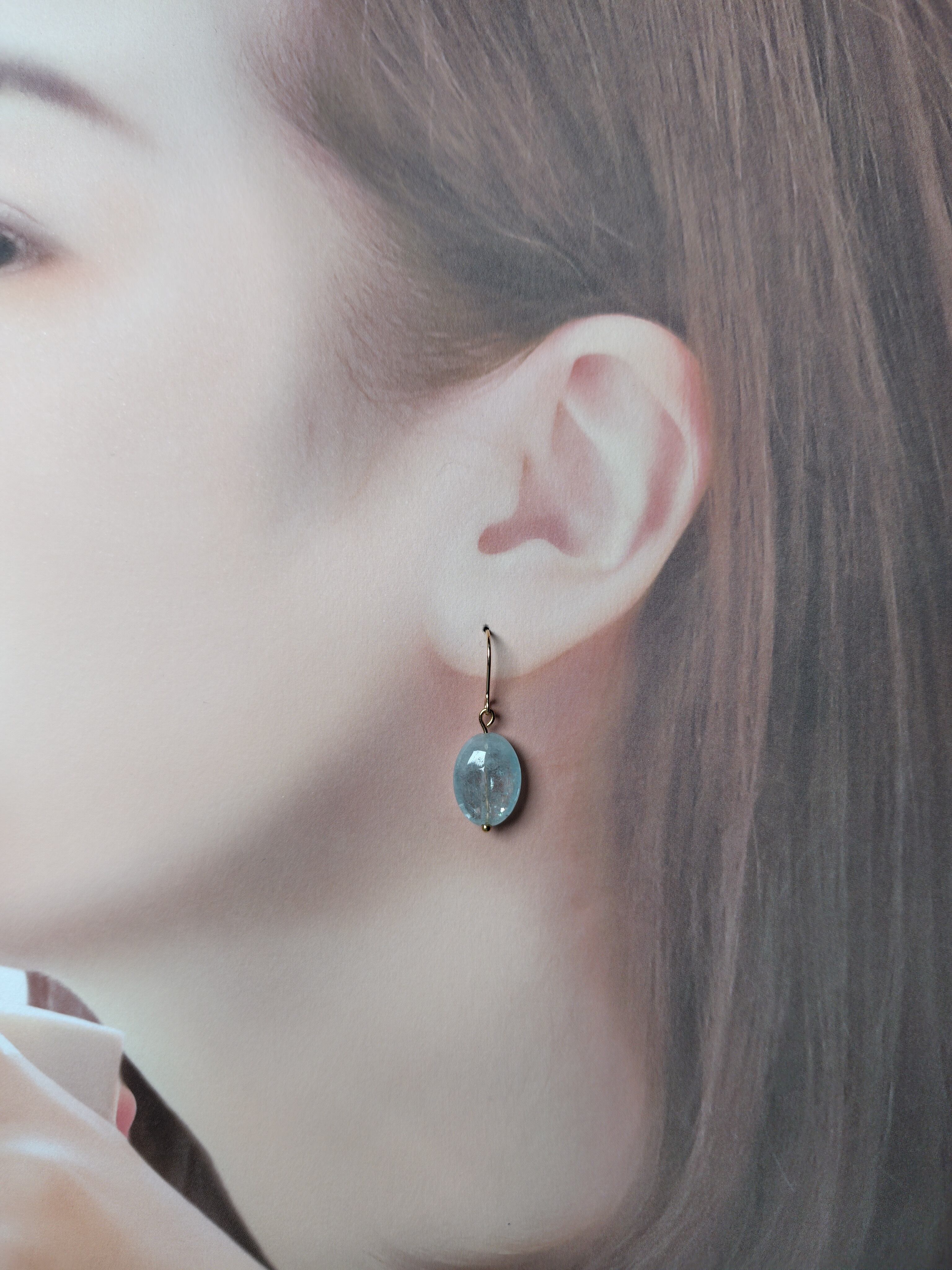 オーバル型のアクアマリンのピアス