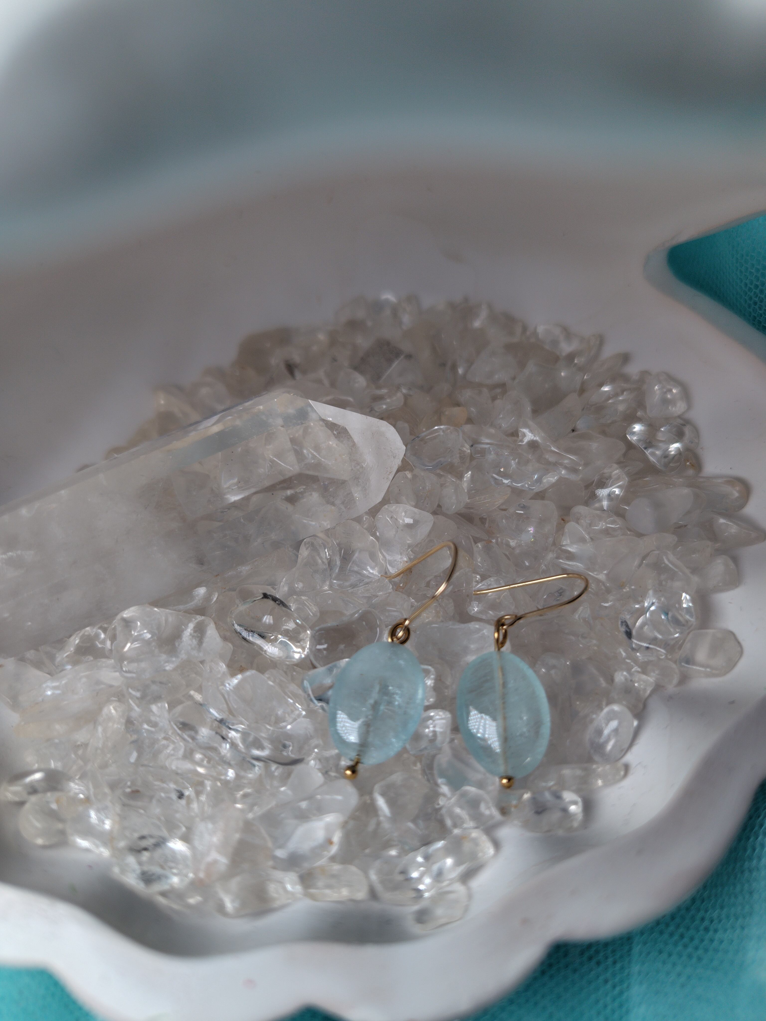 涼し気なブルーのアクアマリンは、エメラルドと同じベリルの仲間。昔から海のお守りとされてきました。幸せな結婚のお守りとしても人気があるようです。